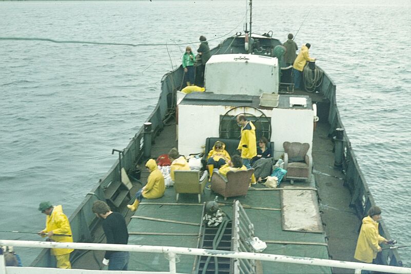 29 mei 1977, de dag van ondertekening van het koopcontract van de MV Aegir. Op de foto het schip in originele staat als sportvisser. Velen, waaronder heel veel Belgen, gingen met haar de Noordzee op om een visje te vangen. In het ruim stond over de gehele lengte van het schip een bar, vette worst met bier was de de specialiteit de la maison. Bij slecht weer of tegenvallende vangst kon je hier altijd wat achterover slaan.