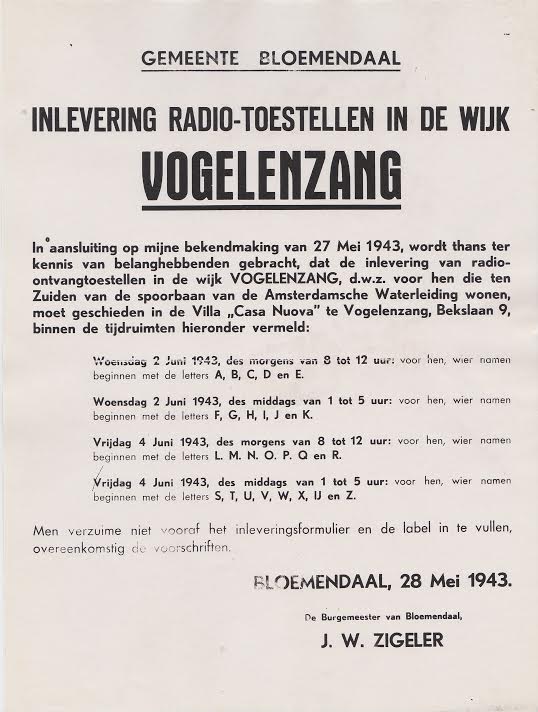 Nadat de Duitsers ons land waren binnengevallen werd na een periode van drie jaren besloten dat alle radios ingeleverd dienden te worden bij de bezetter. Niet iedereen gehoorzaamde aan de eis van de bezetter om mee te werken. Een van hen was handelaar Sipma, die besloot zijn volledige bedrijfsadministratie te vernietigen om te voorkomen dat de bezetter van zijn administratieve gegevens gebruik zou kunnen maken voor het opsporen van door hem verkochte radiotoestellen, en dus de rechtmatige eigenaren.