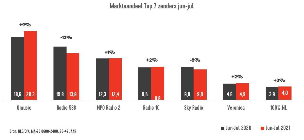 Marktaandeel jun-jul 2020 en 2021, bron: NLO/GfK, doelgroep 20-49 jaar