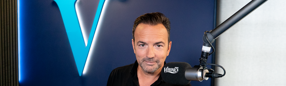 Afbeelding: Gerard Ekdom in de Radio Veronica studio (foto Naomi van Verseveld/Radio Veronica)