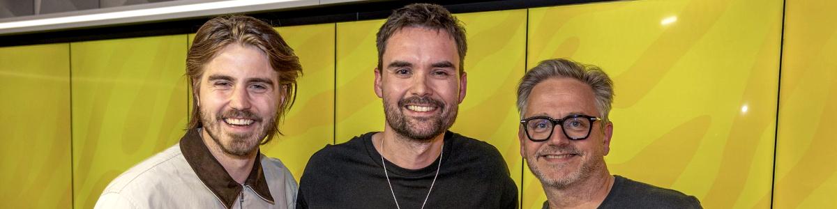 Afbeelding: MAKSIM, Domien Verschuuren en Guus Meeuwis (foto Qmusic)