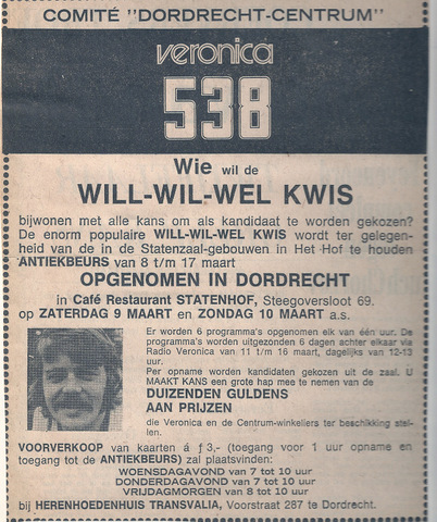 Geplaatst 12 augustus 201411 jr. Als geboren Dordtenaar vind ik het nog steeds leuk dat ik dit knipseltje heb. Ik kan me ook nog goed herinneren dat Ad en Juul de apparatuur in de Veronica bus in stonden te laden. En opeens komt de vraag op , zijn er onder jullie mischien die uit deze serie programma s opnamen hebben in het archief?
