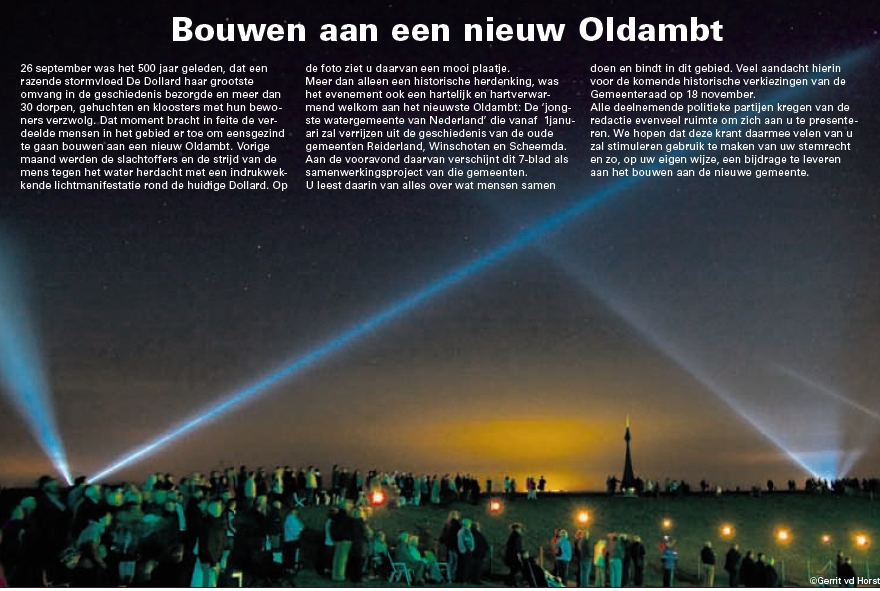 Geplaatst 9 juli 20169 jr. Mooie fotoserie van dit prachtig poldergebied. De palen, nabij Nieuwe Statenzijl staan in 'Oudestatenzijl'. Vroeger werd daar het water gespuit. Een jaar of zeven geleden (2009), in het kader van de Stormvloed 1509 heb ik bij Nieuwe Statenzijl in opdracht een festival georganiseerd over 'Verdronken dorpen'. Dit heette 'Een licht voor elk dorp'. We hadden op zo'n vijftien plekken (op de Dollard en langs de kust van Carel Coenraad en aan de andere kant van de grup [Duitse grens] van die grote zoeklichten geplaatst. En iedere keer in het 'verhaal' als een 'verdronken dorp' genoemd werd, lichtte een lamp op. Een bijzonder schouwspel. Dezelfde tekst, maar dan in het Duits en PlatDuuts, werd tegelijkertijd voorgedragen in Emden en Pogum. (Dld). Dit werd 'op' Nieuwe Statenzijl gadegeslagen door zo'n 1000 tot 1500 mensen. Op een boot 'op' de Dollard speelde toen het theaterstuk 'Leste man van Torum'. Vanaf dat moment stond ik bekend als de 'eerste fileveroorzaker bij Nieuwe Statenzijl'. Zie je het voor je? Honderden auto's op die smalle paden? En allemaal moesten ze mee-eten [en parkeren] Bij Nieuwe Statenzijl wordt gepuit. Dit kan op bepaalde momenten per dag. In totaal waren die avond een zevental boten met zo'n skybeamer op de Dollard. Die moesten 's nachts voor half één weer binnen zijn. Anders viel het watergebied bij Nieuwe Statenzijl droog. De laatste binnenkomst was kantjeboord. De sluismeester heeft zelfs nog gespuit, zodat het nog net mogelijk was. De boordmotor moest er aardig aan trekken, door de heftige stroming van de andere kant. Een bijzonder schouwspel en voor mij zeker een festivalavond om nooit te vergeten. De zangeres die je in het filmpje hoort vanaf 0.20 is Linde Nijland. Zij woont 'op' Nieuwe Statenzijl (www.lindenijland.nl). Foto: Gerrit van der Horst - Zevenblad Scheemda okt. 2009https://www.youtube.com/watch?v=Ksq8GG4cmDc
