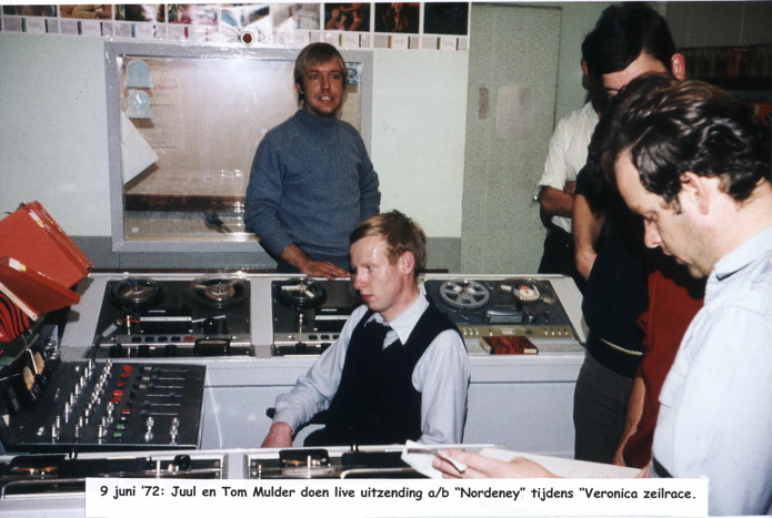 Geplaatst 9 augustus 20169 jr. 34 minuten geleden zei Juul: Nog een stropdas maar dan ben ik het. Uit het "beroemde" dagboek van Sanne Benjamin, de scholier destijds in Alkmaar. ©Sanne-Stichting Norderney ============ VERONICA ZEEZEILRACE 1972 vrijdag 9 juni 1972 Begin Zeilrace Will doet Ook goeiemorgen (maar het eerste uur is nonstop). Lex vertelt in de Lex Harding Show dat datgene wat Jurg heeft toch weer niet de rode hond blijkt te zijn, maar het was nogal ingewikkeld. Om half 3 doet Arend het weerbericht voor de scheepvaart; hij wenst meteen alle zeezeilers heel veel succes, en vertelt dat er om half 5 weer een extra weerbericht komt. Om 4 uur begint Rob Out met de live uitzendingen. (maar vanwege autorijles was ik pas om kwart over 4 thuis). Het blijkt dat de zeezeilers om 2 uur ’s middags vanaf Colijnsplaat gestart zijn. (Informatie over de zeilrace staat allemaal in het blad Veronica 192 van deze week, dus dat schrijf ik niet op.) Vanaf 4 uur wordt er 50 uur live vanaf het schip Veronica uitgezonden, te beginnen met de Rob Out Show, techniek Juul Geleick. Speciaal voor de zeilrace zijn prachtige spotjes gemaakt, gezongen door een lief meisje met een mooie stem (Patricia), die geregeld gedraaid worden. Het weer is helaas niet zo mooi, bewolkt en regenachtig, windkracht 4 à 5, maar dat vindt Rob al genoeg, want het slingert evengoed al lekker. Om half 5 komt Arend weer met het weerbericht voor de scheepvaart. Rob doet de groeten aan verschillende zeezeilers, en er is een verzoekje voor de bemanning van de Lutine H1597, van Ilona, Jeannette, Nel, Yvonne en Marijke. Men verwacht dat de schepen de Veronica om ± 2 à 3 uur vannacht zullen ronden; maar later wordt er gesproken over ± half 5 in de ochtend. Rob leest de hele lijst met deelnemers voor, het zijn er een stuk of 45. Als zeezeil-deskundige is niet Lex Pranger aan boord (zoals vorig jaar), maar een andere man, die voorspelt dat meneer Joppe met de Vuurvlieg 2 gaat winnen. Lex komt even binnen en smoest iets over pakkies voor maandagavond, voor de 100e Adje Boumans Top 10. (dat gaat weer helemaal te gek worden). Tegen 6 uur neemt Rob voorlopig even afscheid (met die 50 uur live valt het dus zeker nogal mee?). Om 6 uur komt Stan met Jukebox deel 2. (voor deel 1 heeft hij trouwens een andere tune, nl. “Een drukkie op de knop” van Ed en Willem Bever en de rest). Stan vertelt van alles over de Jukebox-toppers-show en over het Veronica-elftal. Dat speelt morgen om 11 uur op het gemeentelijk sportpark in Oisterwijk tegen een carnavalsvereniging, entree f 1,--, opbrengst voor het Walhalla. Nol gaat op vakantie, naar Denemarken, IJsland, Lapland en Zweden enzo. Om 7 uur komt de Lexjo, ook niet live. Lex houdt zijn aankondigingen zo kort mogelijk, om zijn stem te sparen. Met zijn stem is het inderdaad een beetje prut. Na 8 uur is er geen afscheid van de bemanning, en wie komt er dan? … Klaas Vaak! De wind is ’s avonds lekker afgezakt, en Klaas en Rob doen omstebeurt een uurtje, onder zeer romantisch licht, paarse en oranje t.l. lampen, net zoiets als in bepaalde buurten in Amsterdam. Techniek: Atze Veenstra, José van Groningen en Ruud Doets. Arend zou t/m 1 uur doorgaan met het nieuws. Kok Chris had heerlijk eten gemaakt, gebarbecued enzo. Klaas doet leuk, er wordt veel lol gemaakt, en Rob praat de hele tijd met wedstrijdcommissaris Joop Michel, die ook aan boord is, over de wedstrijd en over het zeezeilen. Klaas en Rob waren gebracht door Toet van het Goudhaantje? De bemanningen van de diverse meedingende zeilboten hadden een plaatje kunnen aanvragen (op een speciaal stencil, waarop bijzonderheden van de schipper enz. ingevuld moesten worden), en die plaatjes draaien Rob en Klaas nu. Later komt er nog een bootje aan, en komen William Pont met zijn vrouw Mieneke en hun kinderen, en later komen er nog veel meer mensen en zinkt het schip bijna. Tot ± 12 uur geluisterd. ============ Ik was in 72 ook van de stropdassen, voorgeschreven door mijn werk. Tot 2010 voor mijn werk altijd een stropdas, regiment stropdassen met de bekende dwarse streep, past ook goed bij mijn karakter. Van 2010 tot 2014 geen dassen meer, wel jasje-blauw overhemd met button down en daaronder een coltrui donkerblauw. Tegenwoordig loop ik meer op klompen met een vale spijkerbroek, de jasjes en dassen hangen in de kast. De 5 cilinder Volvo turbodiesel met 190 pk en brandstofpas retour lease maatschappij, in het dorp alhier scheur ik op mijn Spartamet> 28cc 1 cylinder en de auto is een wat oudere Paugeot station waar in ieder geval 1 Ierse Wolsfhond in past. Maar Juul.....die foto waar jij opstaat in de boordstudio, is die wel uit 72? Ik zie namelijk geen draaitafels en ook het mengpaneel lijkt anders. Hulde aan Sanne voor die prachtige aantekeningen in haar dagboek.