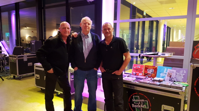Geplaatst 11 november 20169 jr. Gisteravond was ik op uitnodiging van Jaap en Jacqueline Schut bij de voorstelling: "Johan Derksen en de pioniers van de Nederpop". De voorstelling was bij mij "om de hoek" en wel in Nunspeet. Zo'n 3 km bij mij vandaan……. Museum Rock Art heeft tijdens de toer een stand met allerlei materiaal uit de Nederpop periode. (veel is ook te koop). Voor mij een extra leuke gelegenheid omdat ik weer eens kon bij praten met de pioniers van de Nederpop, t.w Theo van Es (Shoes), Johnny Kendall, Rudy Bennett ( The Motions ) en Frans Krassenburg. ( Golden Earring ). De begeleidingsband waren The Clarks. Ik heb genoten, al die liedjes uit mijn jeugd en Veronica tijd! En natuurlijk ging ik met Frans Krassenburg ( l ) en Jaap Schut ( r ) effe op de foto. foto: ©Jacqueline Schut. Mocht je in de gelegenheid zijn om in de buurt er naar toe te gaan, je hebt dan een mooie nostalgische avond met "De pioniers van de Nederpop". Hier kun je de speellijst van de theaters downloaden. http://www59.zippyshare.com/v/blmoembg/file.html