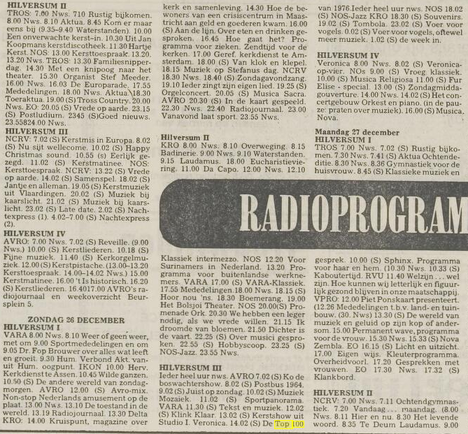 Geplaatst 22 december 20168 jr. 2 uur geleden zei thijs5326: In 1975 heeft de V.O.O. geen Top 100 uitgezonden, Melle. De eerste uitzendig op Hvs 3 was op 2 januari 1976 en dat was maar één uur. Gr.thijs Je hebt helemaal gelijk Thijs. Ik was in de war met 1976, toen werd voor het eerst op Hilversum 3 door de VOO een Top 100 over 1976 in beperkte vorm (4 uur) uitgezonden (zie bijlage uit de Leidse Courant van destijds). In 1975 heeft de TROS de Top 100 over 1975 nog in zijn geheel uitgezonden. Gr, Melle