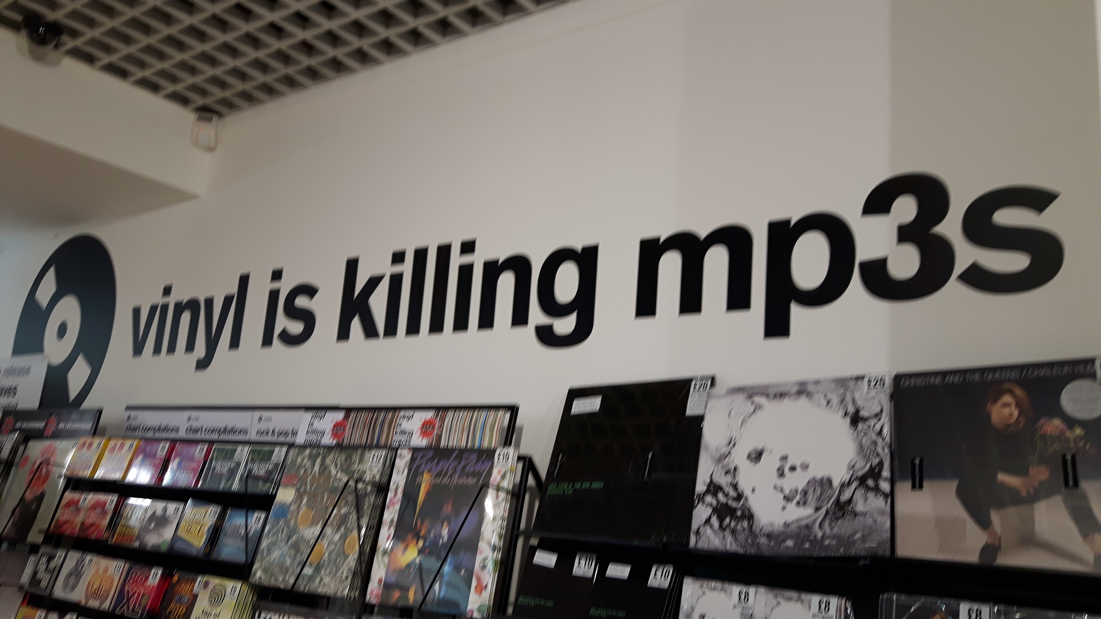 Geplaatst 25 januari 20178 jr. De elpeehandel gaat onderuit? Dat is nieuw voor mij. Het laatste wat ik hoorde, was dat de boel nog steeds in de lift zat. Bijgaande grappige muurspreuk zag ik het afgelopen najaar in een Britse platenzaak. Wishful thinking, natuurlijk, maar de zaak bestond voor meer dan de helft uit vinyl en werd goed bezocht.