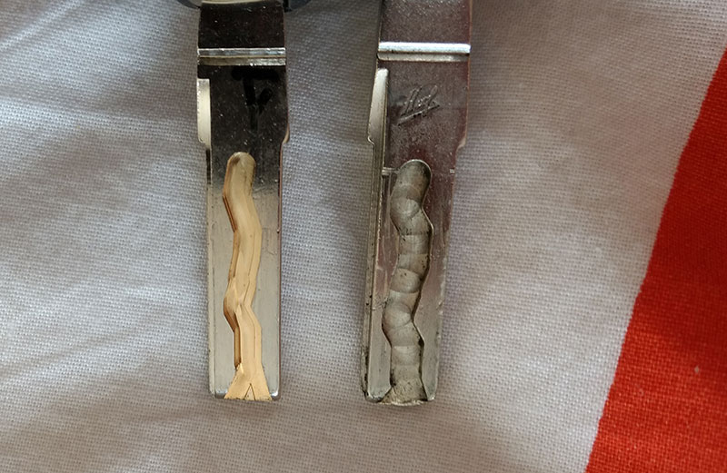 Geplaatst 30 maart 20178 jr. Ja daar is die prutser weer even ...... Na jarenlang met een dikke Audi te hebben gereden werd het tijd voor een opvolger. Na lang zoeken een vervanger gevonden die eveneens 4 ringen in de neus had en nog veel meer trappelende paarden onder de kap. Er was wel een probleem. Er zat maar één sleutel bij de auto en een sleutel bij de dealer bij bestellen was schrikbarend duur. Na wat zoekwerk op Ebay drie zogenaamde klapsleutels gekocht voor 40 euro en zelf het profiel er in gefreesd. Je bent tenslotte gediplomeerd prutser, nietwaar. Toen kwam het probleem dat de sleutels moesten worden "ingeleerd". De auto moet verteld worden dat er nieuwe sleutels zijn en de codes daarvan moet hij koppelen aan de startonderbreker. Daarvoor heb je een zogenaamde PIN code nodig. Tot 2005 kon je die bij Audi opvragen (net als bij andere merken) maar nu dus niet meer. Op Ebay staan er allerlei apparaatjes die de code kunnen uitlezen waardoor je de dealer niet nodig hebt. Na twee systemen te hebben geprobeerd had ik nog steeds de juiste code niet. Uiteindelijk vond ik een gratis programmaatje dat via de OBD poort (zit in dashboard) de Eprom van de startonderbreker uitleest en dat als een bestand opslaat. In dat bestand staan op een bepaald adres twee hexadecimale getallen die je nodig hebt. Die voer je in omgekeerde volgorde in op een rekenmachine die van hexadecimaal naar decimaal kan rekenen. Het getal dat daar uit komt is de PIN code. Vanochtend die code in de auto ingevoerd en drie nieuwe sleutels toegevoegd. En alles werkt ! Mijn dag is weer goed. Rien Op de foto hieronder zie je rechts de originele sleutel en links de door mij gefreesde uitvoering. 31 maart 20178 jr. bewerkt door rien1959