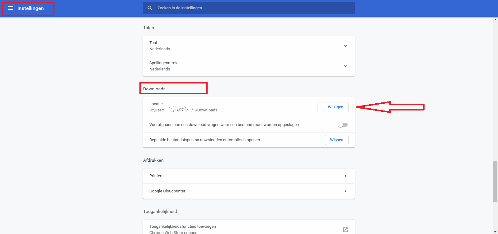 Geplaatst 17 april 20178 jr. Open deze regel in waar je normaal je url plaatst: chrome://settings/ Onderaan Geavanceerde instellingen weergeven… aanklikken. Vinkje zetten bij Voorafgaand aan een download vragen waar een bestand moet worden opgeslagen