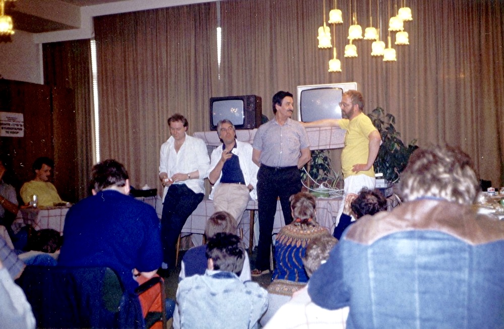 Geplaatst 23 mei 20178 jr. 15 uur geleden zei Juul: Leendert, "rokerig zaaltje" is hier in Nederland een z.g. "staande uitdrukking". Je kunt ook schrijven "zweterig"……..maar of dat nu zo aardig is? Vond nog een mooie foto van een zeezenderdag in 1987 in het Badhotel in Scheveningen. Die vond plaats in een heus rokerig zaaltje. Op de foto vlnr: Ben Bode ,Tom de Munck, Rudi Kagon , de engineer op de Mebo 2 en ten onrechte vaak genoemd in het spionageverhaal en Hans Knot met baard. Salut Leendert