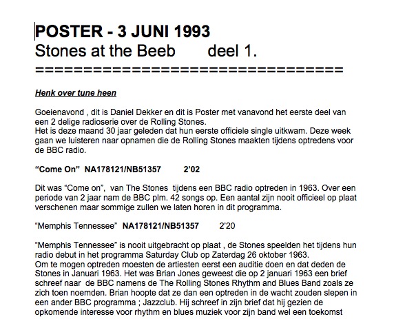Geplaatst 13 juni 20178 jr. Ik heb de volledige documentatie, want wij hebben dat ook uitgezonden, 3 en 10 juni 1993. Moet ik effe zoeken. Mijn draaiboeken en de tapes op DAT die ik van "The Beeb" kreeg hebben het over presentator Andy Peebles. Ook heb ik destijds van de BBC de DAT met daarop de "music only" tracks. Ik zal morgen of zo de complete draaiboeken en nog veel meer proberen te uploaden. (45 mB ). Ik heb even het kopje van de upload van Ray beluisterd, inderdaad Johnny Walker. Dus een andere samenstelling-edit als die wij van de BBC kregen. Derhalve is het zinloos om mijn docs te uploaden. Alleen maar verwarrend.