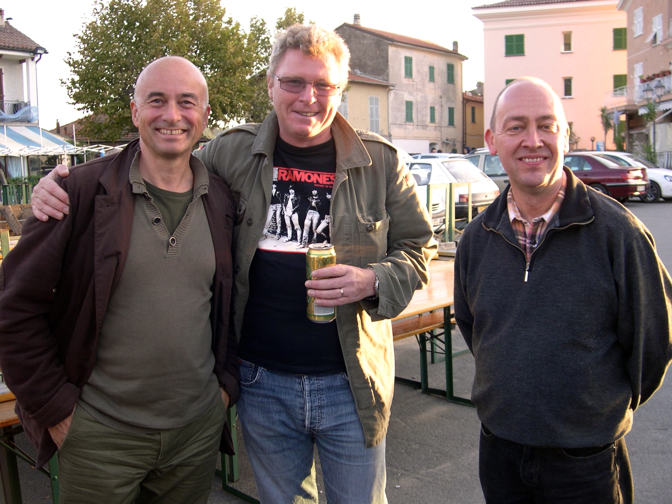 Geplaatst 4 juni 20178 jr. 2 uur geleden zei Omnivoor: Ik heb altijd al gezegd, als je de twee culturen (GB en NL) zou kunnen samenvoegen krijg je een geweldig land. Efficientie van de NL-ers en het gedrag van de GB-ers. Mee eens, maar dan toch graag nog een mediterraan sausje er over om het wat levenslustiger te maken. Om het een beetje on topic af te sluiten. Er wonen ook aardig wat Engelsen van de radioschepen bij me in de buurt. Enkelen wonen er permanent, anderen hebben een tweede huis. Dave Finn, zenderonderdelen leverancier voor de Mi Amigo en de Ross Revenge heeft een appartement in Nice, Rob Harrison woont permanent in Juan-les-Pins, Grant Benson bezit divers onroerend goed, waaronder een appartement in Juan-les-Pins, Kevin Turner huurt een ander appartement van Grant in Seborga in Italie en Tom Anderson verbleef jarenlang in een paar geschakelde caravans in Villeneuve-Loubet. Hij is vertrokken naar een plaats ten noorden van Limoges. Al deze Engelsen, vinden het fantastisch hier. Voor een Engelsman is Frankrijk toch 'het' land. Andersom begint het ook op gang te komen. Op foto restaurant: Grant Benson midden en David Finn rechts Op foto marktplein Seborga: Rob Harrison midden en Kevin Turner rechts. Salut Leendert