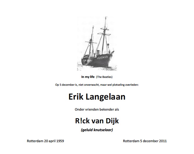 Geplaatst 2 december 20178 jr. Een aantal mensen op dit forum "kennen" Rick van Dijk. Het was zijn forum naam. Op 5 december vieren we niet alleen Sinterklaas maar elk jaar denk ik toch ook even aan "onze" Rick. Hij overleed al weer 6 jaar geleden en nog steeds missen we hem met z'n mooie en kundige bijdragen. Dus op 5 december ook heel even stilstaan bij Rick…………………………... 2 december 20178 jr. bewerkt door Juul