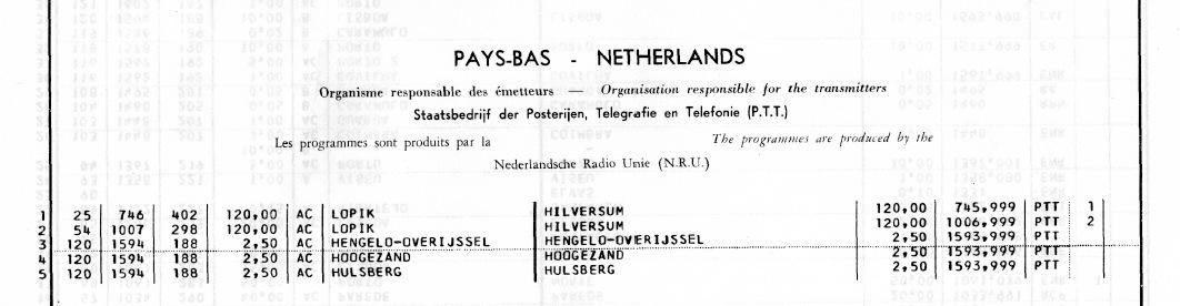 Geplaatst 26 september 20187 jr. Ik zie in alle EBU doc die ik heb nergens Bloemendaal staan op een freq. Wel in het WRTVH van 1970 en een aantal jaren daarvoor. En dit is uit de EBU gegevens 1965. 26 september 20187 jr. bewerkt door Juul