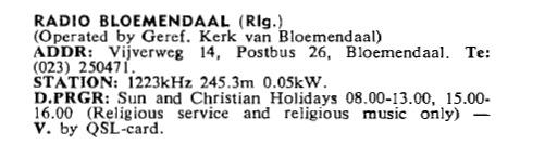 Geplaatst 26 september 20187 jr. Auteur Volgens mij stond Radio Bloemendaal wel in de officiële lijsten van de ITU, zeker na 1979. Piet.