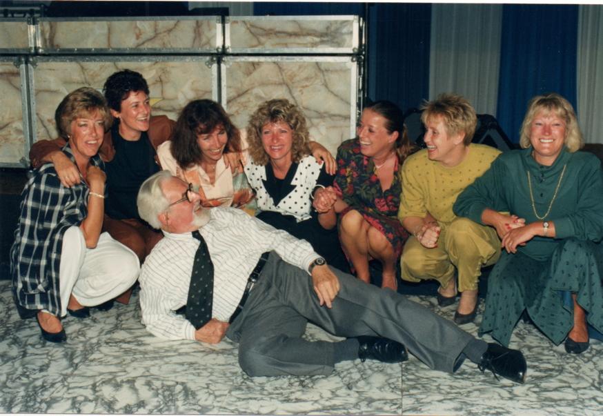 Geplaatst 20 februari 20196 jr. Leuke foto uit 1989, gemaakt op het 80 jarig feest van Oom Bull. Nog één keer met "de meiden van de discotheek" foto © Stichting Norderney.