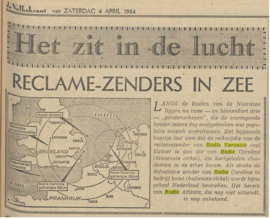 Geplaatst 9 mei 20196 jr. 10 minuten geleden zei bert ree: ik dacht dat Atlanta pas op 27 april 64 in de lucht kwam. Wanneer gingen ze voor anker? https://radiopedia.nl/wiki/Radio_Atlanta_tijdlijn