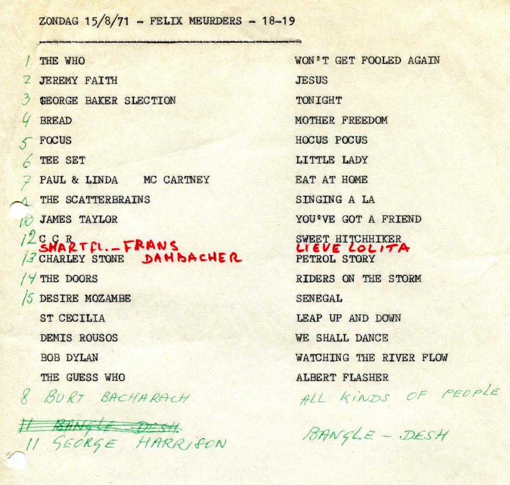 Geplaatst 25 juli 20196 jr. Auteur Populair bericht Luxembourg-19710815 1900-2100-FelixMeurders-MarkWesley En die playlist die Felix Meurders gebruikte voor zijn programma: