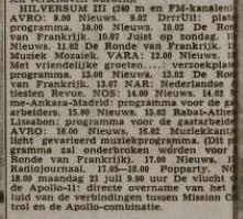Geplaatst 23 juli 20196 jr. 14 uur geleden zei Juul: Het was wel 1969. Een magisch jaar Juul. :-) 1 uur geleden zei Piet van der Vooren: de Leidse Courant van 19 juli 1969 ingekeken, en op de rtv-pagina staat warempel bij het radio-overzicht van Hilversum 3 vermeld dat de uitzending duurde van 18.00 uur tot de volgende ochtend 9.00 uur. Mooi die uitzending na 18.00 uur natuurlijk. Maar wat een baggerprogrammering*** op H3 die zondag(middag), wat een geluk dat je als liefhebber van popmuziek, fijn naar Radio Luxemburg of Veronica kon luisteren. *** Met o.a. twee uur lang programma's voor gastarbeiders uit Italië, Turkije, Spanje, Marokko, Griekenland en Portugal. :-(