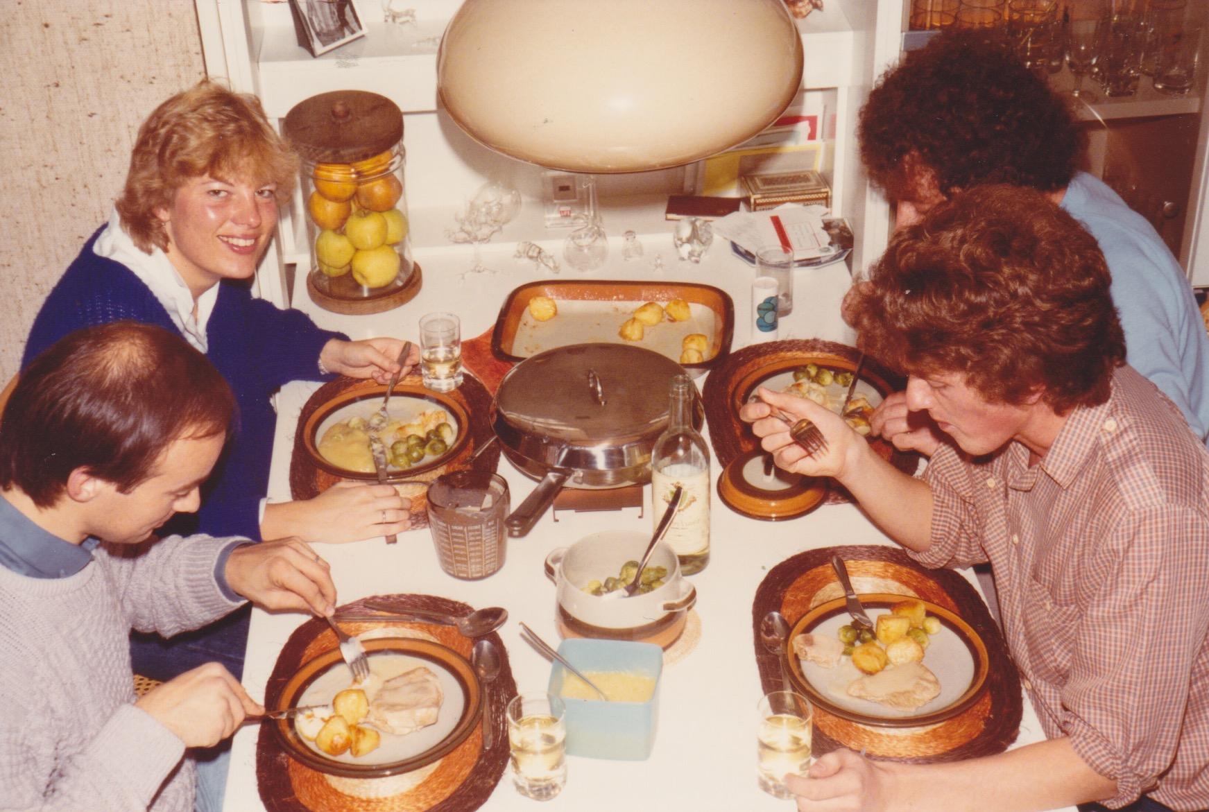 Geplaatst 29 november 20196 jr. Op 28-11-2019 om 19:21 zei Paul de Haan: "He Bo....zo Lus ik er nog wel één". Over eten gesproken. Hier nog een foto van Simon Barrett en Grant Benson aan het diner bij ons thuis in Naaldwijk in 1984. Simon was de kok. Duurde twee uur aan voorbereiding, een uur afwassen, maar het eten was heerlijk... Terugkijkend was het een zeer bewogen periode. De 'struisvogel' uit Ierland (Ronan O'Rahilly) belde regelmatig om te vragen of Simon en Grant weer terug naar het schip konden gaan. Twee uur bellen( à 4 gulden per minuut) om de jongens overstag te krijgen, maar die hielden voet bij stuk. Die wilden alleen naar boord als hun vorige loon zou worden betaald. Ronan hield 'praatjes voor de vaak' en daar trapten de jongens niet meer in. Simon en Grant wilden Nederland ontdekken en pakten van alles aan. Grant ging na vijf maanden weg. Hij kon in Italië bij het Engelstalige Radio Sovereign werken. Daar zat ook Kevin Turner van Caroline.(zie foto) In Italië is hij blijven hangen en heeft later in Milaan een radio 'superstar' status verworven.. Vergelijkbaar met die van Edwin Evers. Grant vertelde me dat zijn succes in Italië vooral kwam door zijn sterk Engelse accent als hij Italiaans sprak. De Italianen vonden dat geweldig. Zoiets als het succes van Caroline/Veronica/Tros dj. Robbie Dale in Nederland.Hij sprak Nederlands met een sterk Engels accent. En zo blijven de herinneringen opborrelen... Salut Leendert 29 november 20196 jr. bewerkt door Leendert Vingerling