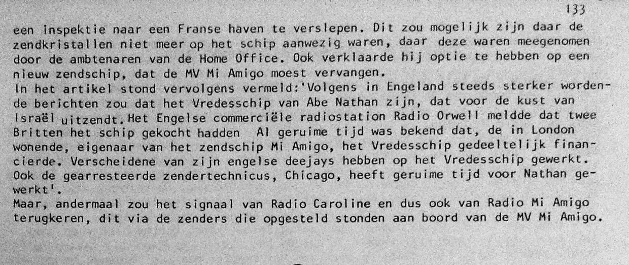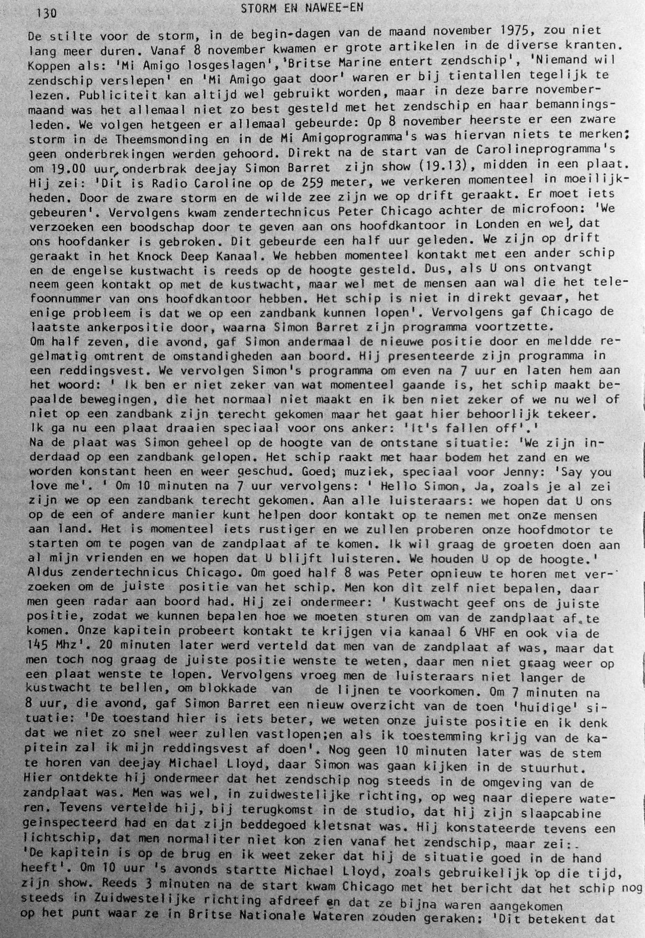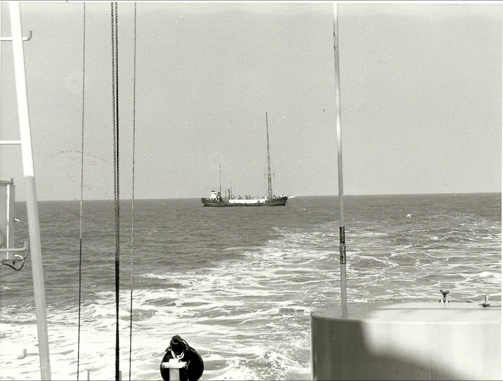Geplaatst 24 november 20196 jr. In november 1975 raakte de Mi Amigo , 12 mijl uit de UK kust, op drift. 10 dagen lang was het voortbestaan van het schip onzeker. Zelfs de Britse Home Offfice kwam aan boord. Over deze 10 dagen in onzekerheid schreef Caroline deejay Simon Barrett een boek, schitterend verhaald. Nu alhier als doenload. https://www.americanradiohistory.com/UK/Miscellaneous/SOS-10-Days-In-The-Life-Of-A-Lady-Barrett-1975.pdf Voor de duidelijkheid, Ik ben niet de scanner van het boek, geef alleen de link door. Op de foto de Mi Amigo gezien vanaf een British Home Office verkenningsschip. 25 november 20196 jr. bewerkt door Gast