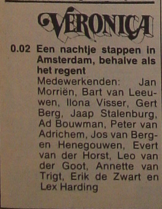 Geplaatst 26 januari 20205 jr. Ergens begin jaren '80 bracht de V.O.O. in één van haar nachtuitzendingen 'een nachtje stappen in Amsterdam'. Diverse teams gingen gedurende de nacht het uitgaansleven van Amsterdam in en deelden hun belevenissen live in de uitzending. Volgens mij werd er ook een kabelpiraat bezocht. Nachtje stappen stond op het lijstje met mogelijke dingen/thema's die men in de nacht zou kunnen gaan doen, en radiodirecteur Lex Harding dacht van 'dat komt nog wel eens'. Maar daar waren zijn collega's het niet mee eens, en ik hoor het Lex nog zeggen 'er moest en zou gestapt worden'. Is er iemand van jullie die deze uitzending in zijn bezit heeft en hier zou willen delen? Want die zou ik best nog wel eens willen beluisteren. Denk dat het zo rond 1981/82 is geweest. Vast bedankt!