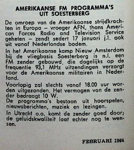 Geplaatst 30 april 20205 jr. Hier nog wat info over AFN Soesterberg uit mijn jeugd. Ik weet nog goed dat toen ik er een keer heen fietste je bijna vanaf de weg de zender kon "aanraken" lag vlak aan de weg in 1964. De info komt uit Radio Bulletin.