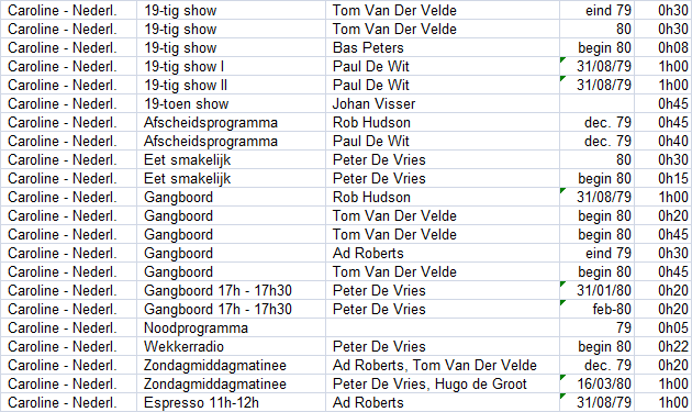 Geplaatst 26 juli 20205 jr. Auteur Hallo Martien, Klopt inderdaad wel dat de reclames deel uitmaken van zo een programma. Destijds was er echter ook een praktische reden om die niet op te nemen. Ik gebruikte toen nogal veel C90 cassettes van 45 minuten ipv C120 die kwetsbaarder waren voor bandbreuk. Zonder de commercials kreeg je daar dan meestal toch "een uur" programma op. Zeker in de laatste periode van de Nederlandse Caroline zaten er heeeeeeeel veel commercials op een uur. En ... ik vond de commercials op Mi Amigo "beter" dan de meeste rommel op Caroline 🙂 ... Heb helaas ook niet altijd volledige uren van de Nederlandse Caroline, soms slechts een kwartier of minder. Deze moeten nog eens de digitalisering doorstaan, indien er "verzoeken" zijn, laat maar komen. Op het einde staat de tijdsduur van elke opname. mvg, Frank 26 juli 20205 jr. bewerkt door FrankV