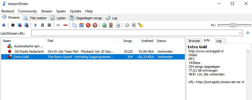Geplaatst 25 september 20205 jr. 3 uur geleden zei Everton: Spijtig dat de klad is geslopen in het wekelijks aanbieden van de Radio Extra Gold Historische Top 40 en Tipparade. Maar in elk geval bedankt voor wat we wel hebben mogen bemachtigen. Hopelijk mag ik een enkele keer iemand verzoeken een opname te plaatsen, in dit geval de Top 40 en Tipparade van 12-09-1987, uitgezonden op diezelfde zaterdag, maar dan in 2020. Van 1987 zijn nog maar weinig Extra Gold uitzendingen geweest, vandaar mijn verzoek. Who can help me (and other members) out? Greetz, Everton http://www.mediafire.com/file/kauhpr6jmbv17ng/file Hierbij de top 40 en tipparade. Met streamwriter kun je zelf opnemen. De urls https://192radio.stream-server.nl/stream en http://extragold.stream-server.nl toevoegen. Ben je niet afhankelijk van andere. Gr Kees 25 september 20205 jr. bewerkt door Casey