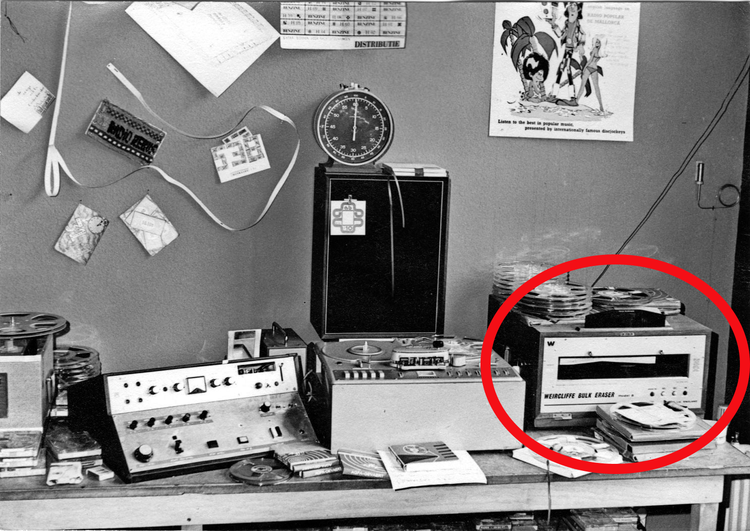 Geplaatst 11 februari 20214 jr. Wij hadden er ook 1, maar dat was toen............................ 2 uur geleden zei Marten Minkema: Dank collega! Nou er staan allemaal ruwe opnamen over een periode van 30 jaar op die tapes, waar ik als een kok iets van gemaakt heb voor de radio. Ik wil beslist niet dat het 'basismateriaal' gaat rondslingeren. Maar inderdaad: slecht wissen met zo'n supermagneet geeft die cassettes een oplawaai en maakt ze onbruikbaar - heb ik gelezen. Dus er komt wel wat bij kijken, ik laat mij graag instrueren. Overigens stond zo'n bulk eraser tot 1997 in Villa 65 van de VPRO, in een alkoof in de gang die leek op een telefoonhokje, maar dan met een deur: het kleinste kamertje in het gebouw, de wc was groter. De deur moest dicht bij gebruik, want in hetzelfde gebouw stonden ook kasten vol banden met unieke opnamen. Alleen die eraser stond in het kamertje, een zware zwarte doos op een plankje. Met een pin bovenop waar je de kern van grote uitzendbanden op kon zetten, als LP's op een platenspeler. Er zat maar 1 knop op, een rode en dan ging de doos hard brommen en moest je de band ronddraaien. Dat ging heel moeizaam vanwege het magnetisme. Maar deed je het goed, dan was de band weer helemaal schoon. Ik heb gevraagd bij de omroep of ze de eraser nog ergens in opslag heeft staan, maar nee: al lang geleden weggedaan. Te gevaarlijk met al die computers in de buurt. Bij B&G staan er nog zeker 2 weet ik "toevallig'.