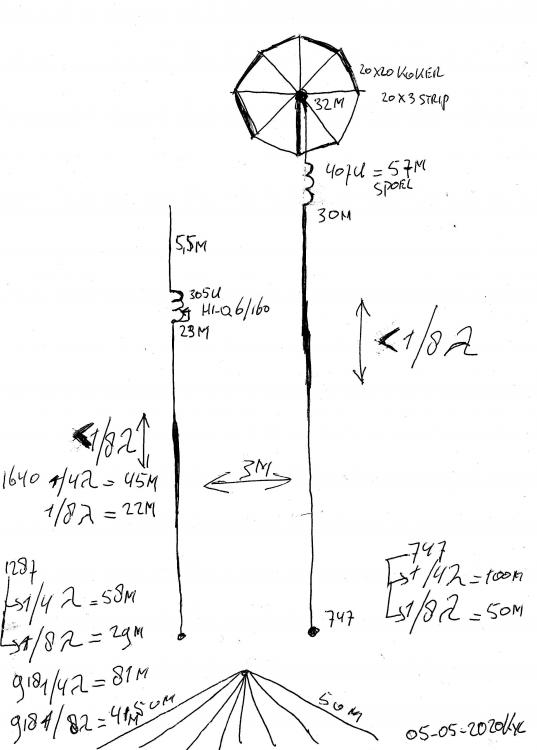 Geplaatst 4 maart 20223 jr. Auteur Bedankt voor de antwoorden Rob, Theo en Jan. Ik neem jullie ervaringen zeer serieus. Het is dus te doen, maar het lijkt me echt een (leuk!) project voor in de achtertuin waar je steeds bij kunt. Dit echter zou moeten worden gerealiseerd "op de hei" en niet naast de deur en is ook niet als hobby project bedoeld. Ik heb de indruk dat het in de praktijk ook een vrij storingsgevoelig systeem is. Ook die 3 tot 4 dB verlies is een minpunt. 100 Watt PEP is al zo weinig... De andere optie is een tweede antennedraad. Op bijgaande foto's hoop ik dat je kunt zien hoe de antenne is afgespannen. Ik zal de lengte nog eens nagaan: ik dacht 50 meter. Die tweede draad zou dan aan de andere kant van de mast moeten worden afgespannen. Iedere zender zou dan zijn eigen antenne krijgen. Wellicht met een sperfilter op de andere frequentie. Ik ben benieuwd naar jullie commentaar 4 maart 20223 jr. bewerkt door Andries 2 Dubbele plaatsing