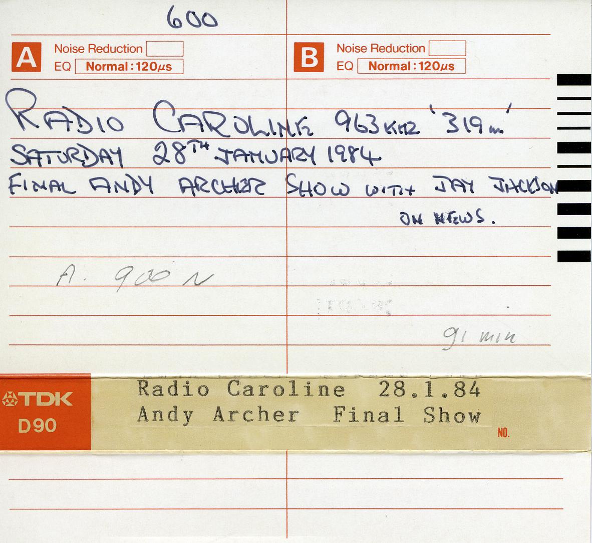 Geplaatst 8 april 20223 jr. Auteur Populair bericht Dit is de eerste: Radio Caroline 28-01-1984 09:00-10:35 Final Andy Archer show with Jay Jackson on the news Even een opmerking van technische aard. Vaak vergeet ik 't , maar bij deze heb ik even gecheckt of de opnamen op de juiste snelheid lopen. Eén van de dingen waar ik naar kijk is de frequentie van de "brom" in de opname. Bij deze opname zat er brom rond de 50 Hertz en rond de 60 Hertz, maar één van de twee week 2 hertz af. Ik heb dat gecorrigeerd en op basis van één van de nummers in de opname gecheckt of de snelheid nu overeenkomt met de CD versie van dat nummer. Mocht je bij deze of één van de volgende uploads een snelheidsafwijking horen (zelf hoor ik dat alleen bij grote verschillen), laat dat dan svp weten. Veel luisterplezier!