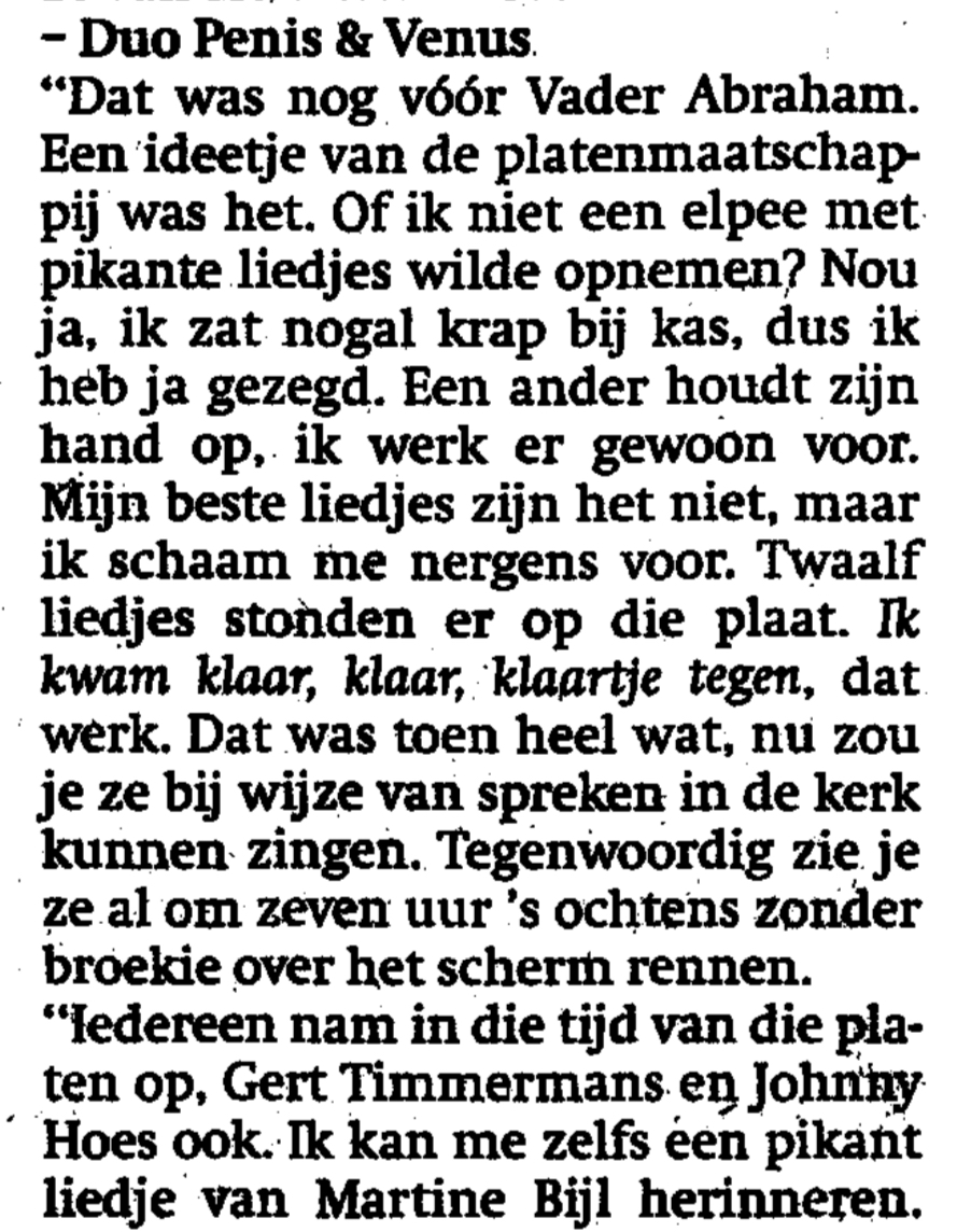 Geplaatst 18 november 20223 jr. Op 16-11-2022 om 20:44 zei thijs5326: Ook voor een S*x-lp was hij wel te porren. Bron : Parool 29-10-1994. net binnen gehaald deze elpee en voor nu valt het best mee !