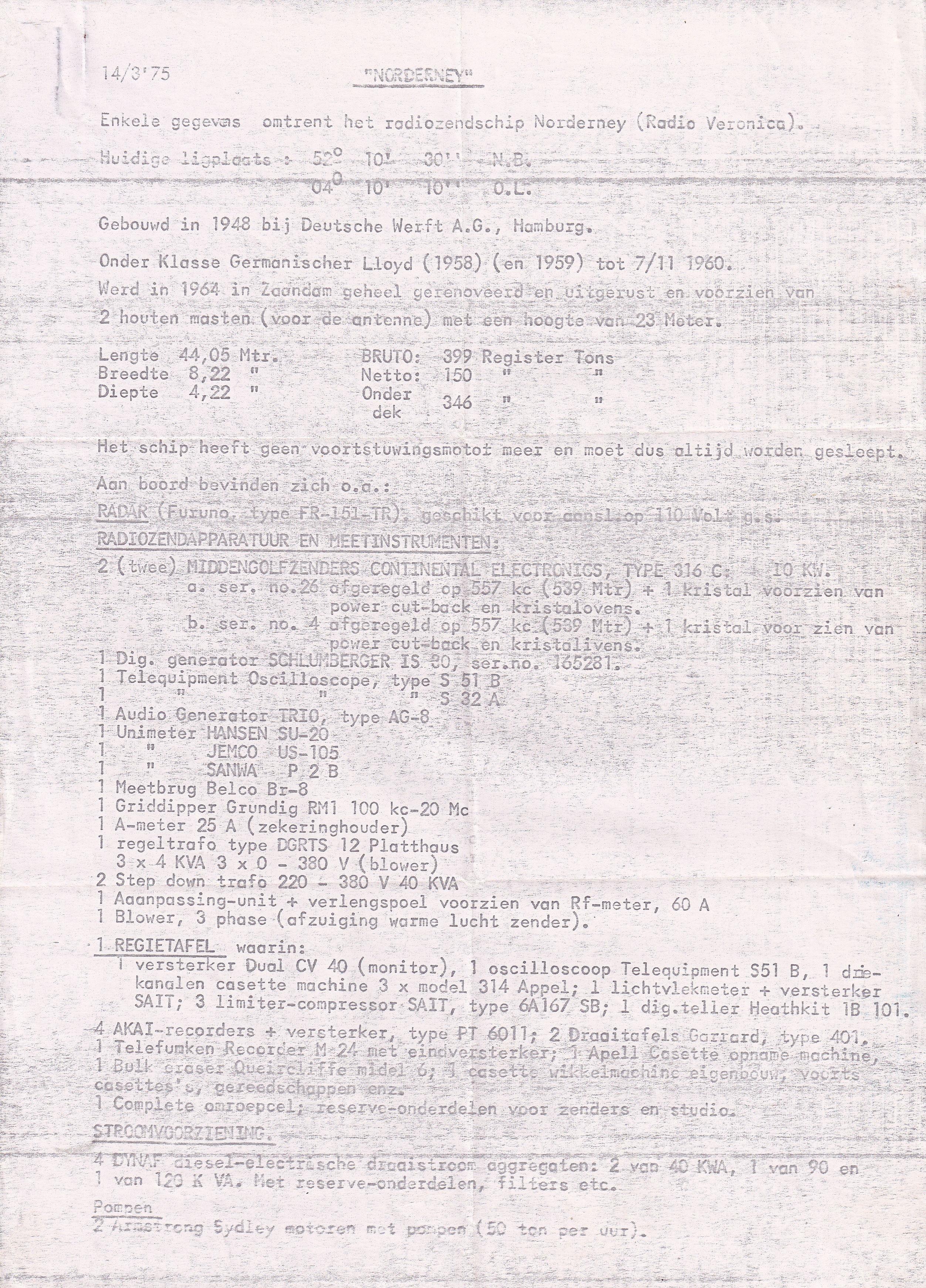 Had misschien wat kunnen worden, de Norderney zendend vanaf de voormalige ligplaats van de Jeanine van Radio Atlantis, met dan een heel mooi signaal in Vlaanderen.