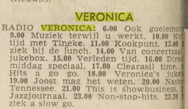 Geplaatst 6 januari6 jan Het Veronica radio programma in de krant van dinsdag 27 februari 1968. Het Algemeen daglad. Joost mag het weten. Om 7 (19.00) uur. Groet, Raymond