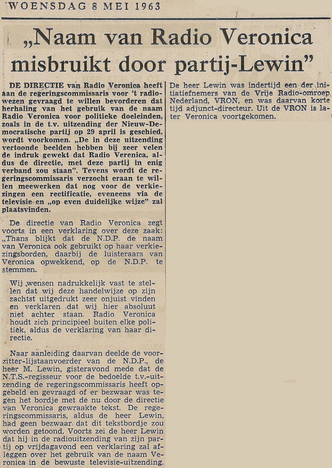 19630508 onb Radio veronica misbruikt door partij Lewin.jpg