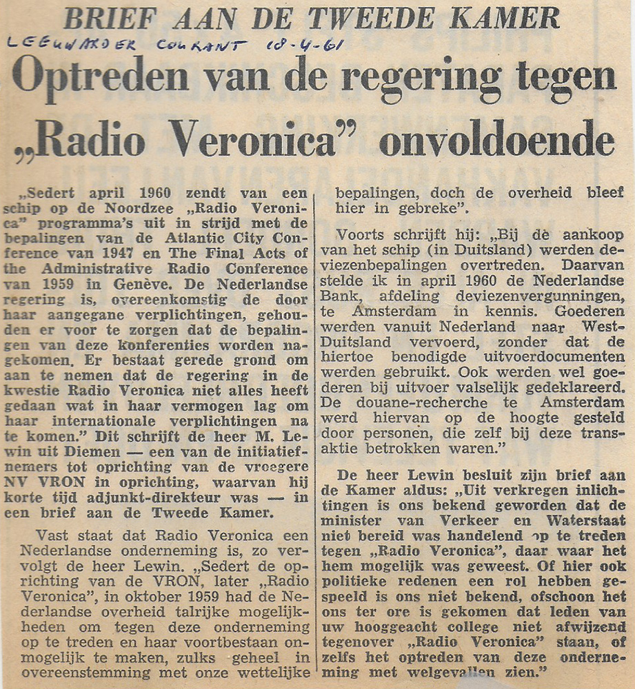 19610418 leeuwarder courant Optreden tegen Radio Veronica onvoldoende.jpg