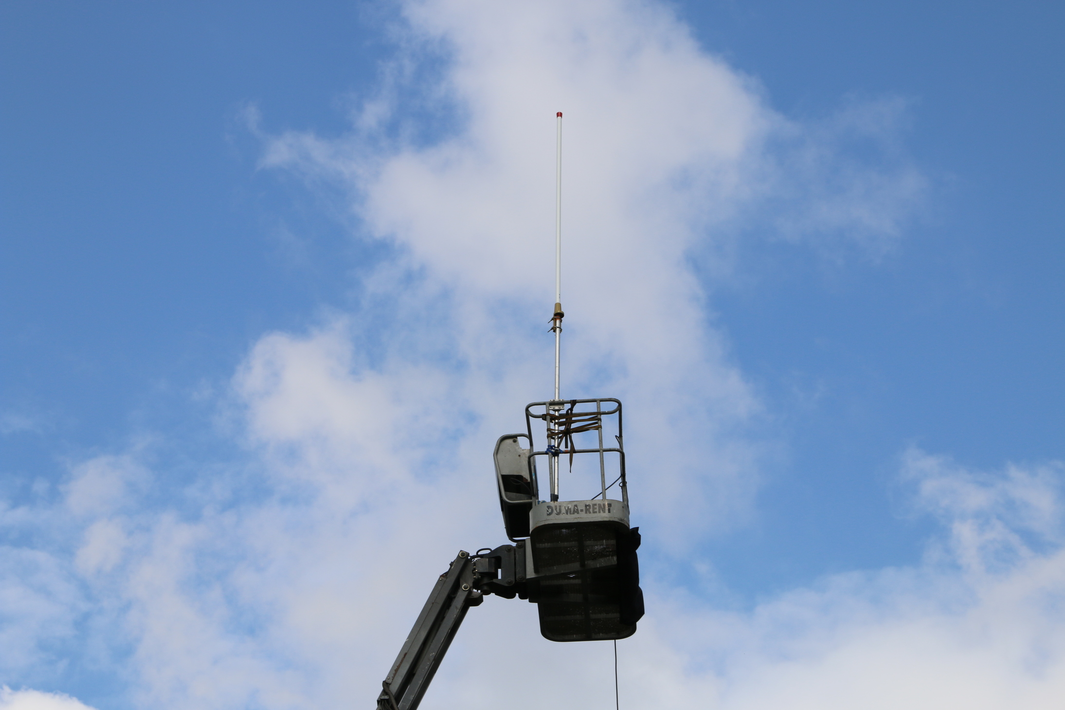 De antenne van de 100 Watt FM-zender naar Hotel Kennedy.