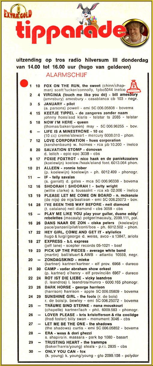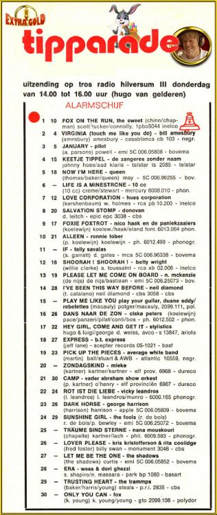 16. This past weekend + wednesday replay, there were some computer bugs at 192 Radio during the Tip parade. Here's my recording from 2010 : https://www.mediafire.com/file/v7if8iigbrnj77z/Veronica+Tip+Parade+-+1971-03-27+-+Radio+192+(+2010+).zip/file
