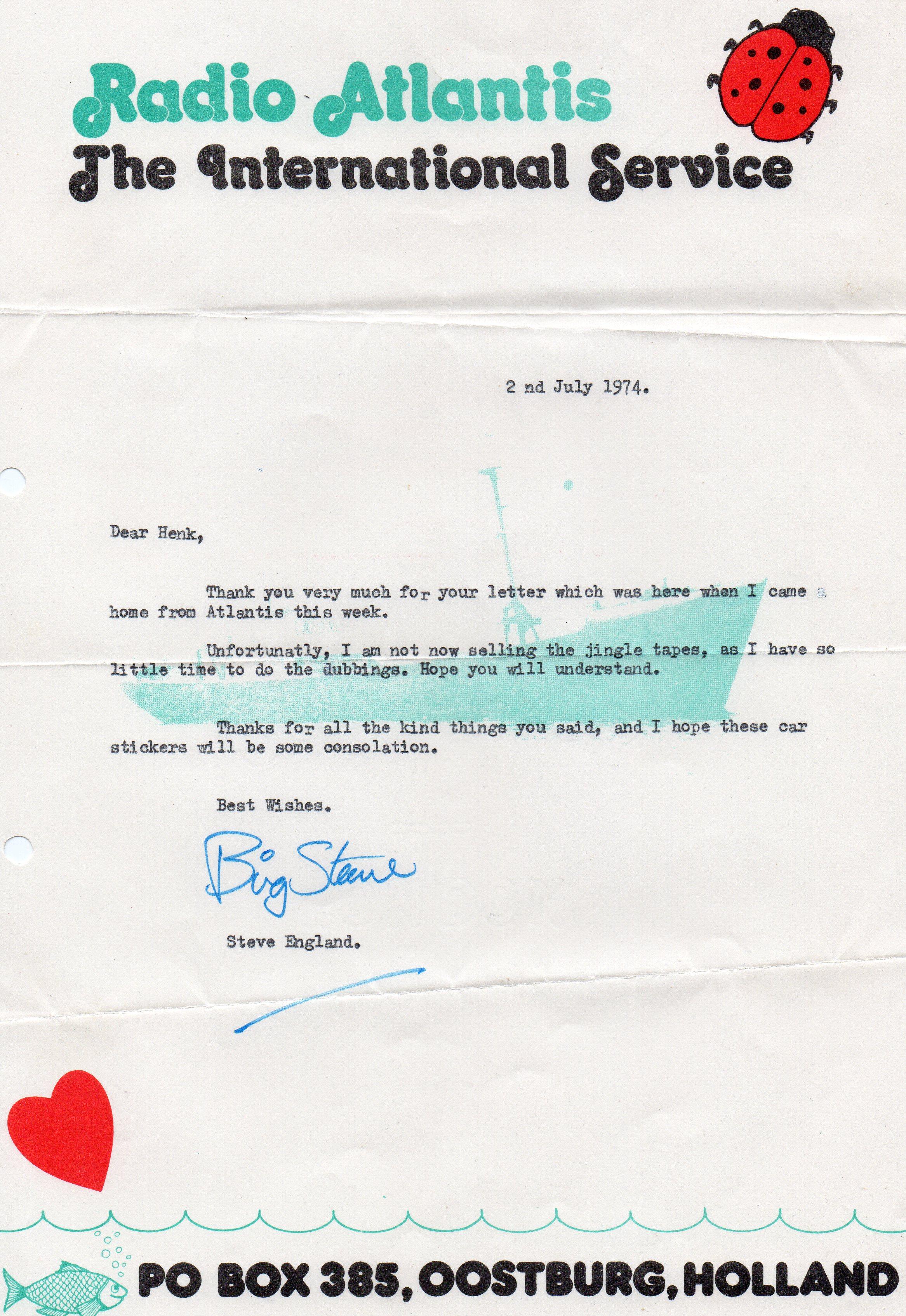 Dit is leuk Martinja, een dagje Radio Mi Amigo uit Juli 1974. Die eerste week van Juli, ik was toen nog 18 jaar, gingen we met school "op kamperen", een tent voor de jongens en een tent voor de meisjes... je snapt het wel... diverse leraren hielden 's nachts "de wacht" tussen die 2 tenten als er weer eens eentje in de "andere tent" wou kruipen. Ook had een van onze jongens toen al een prachtige snor gekweekt en na de bedreiging "om dat ding als ie slaapt af te scheren" bleef ie 3 nachten wakker om zijn kweeksel te beschermen. Mooie tijd was dat... Na 3 dagen werden we door de camping eigenaar van het terrein afgestuurd.. tja, wat wil je... 12 jongens en 10 meisjes van 18 en 19 jaar bij elkaar zetten... .. blijkbaar waren we niet al te braaf geweest en waren de 3 leraren die mee waren gegaan als "bewaker" ten einde raad.