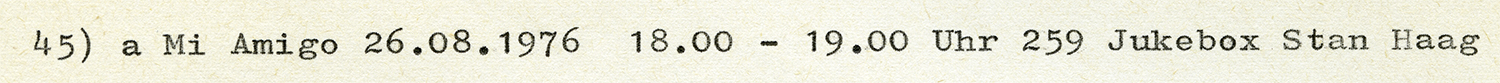 31. Deze opname komt uit het archief van Helmut Slawik. Radio Mi Amigo 26-08-1976 18:00-19:00 Michelle Jukebox Ik ben niet zo bekend met Mi Amigo stemmen, mocht dit niet Michelle zijn dan zou ik dat graag willen weten.